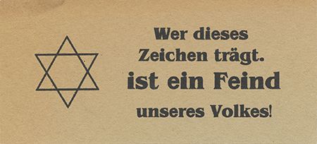 Anti-Semitic handbill, 6 1/4" x 3", black ink on light green paper, shows a Star of David with the legend: "Who wears this symbol is an enemy of our people!". Light toning else very good.