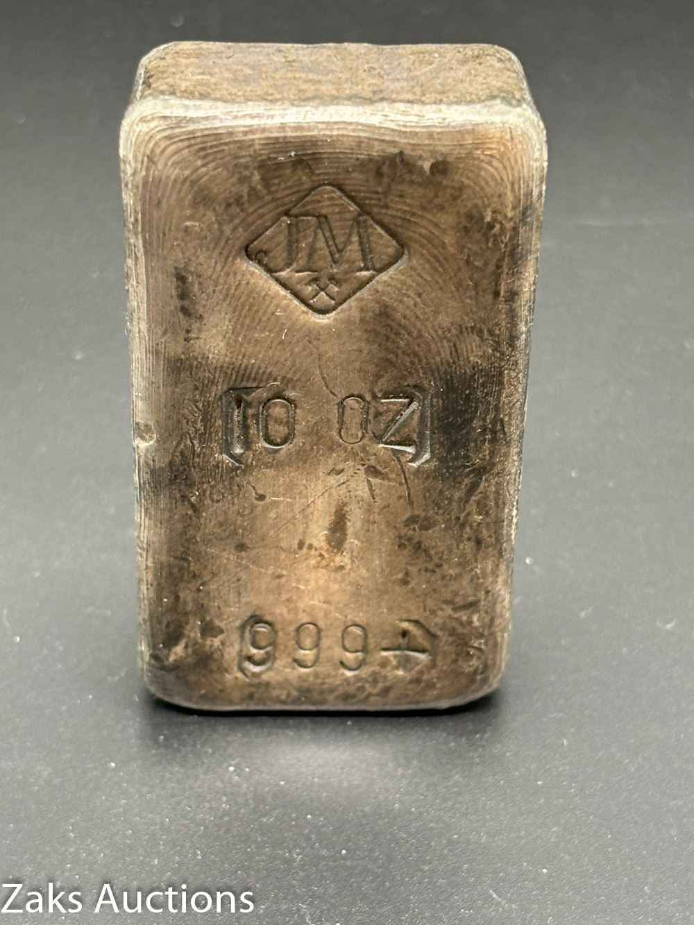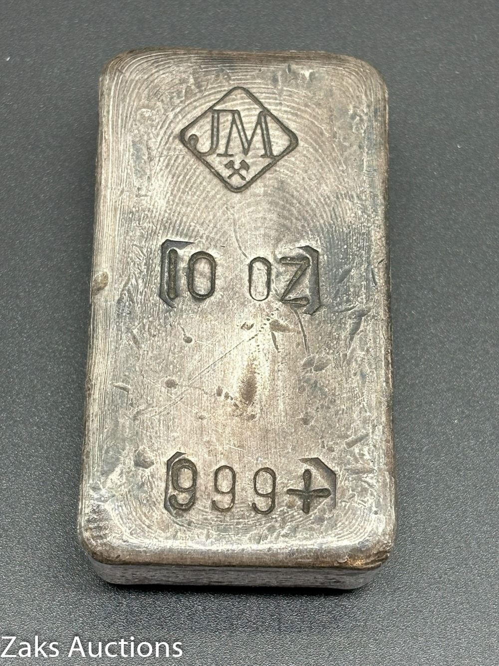 RARE TEN OZ JOHNSON MATTHEY ANTIQUE FINE SILVER BAR, NO TAX