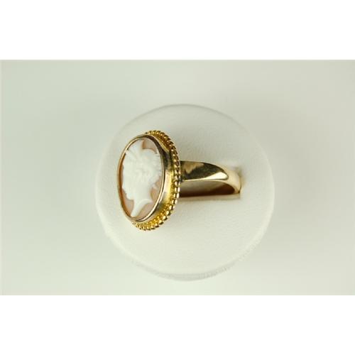 This ANTIQUE 14K GOLD CAMEO RING features a stunning Cameo of HERA, QUEEN OF THE GODS. She is surrounded by cannonball beaded accents. This very Impressive ANTIQUE CAMEO RING is CIRCA 1870. The Cameo measures 3/4 inch by 9/16 inch in width. The ring is a Size 9 3/4 and it CAN be resized. It is in excellent condition.