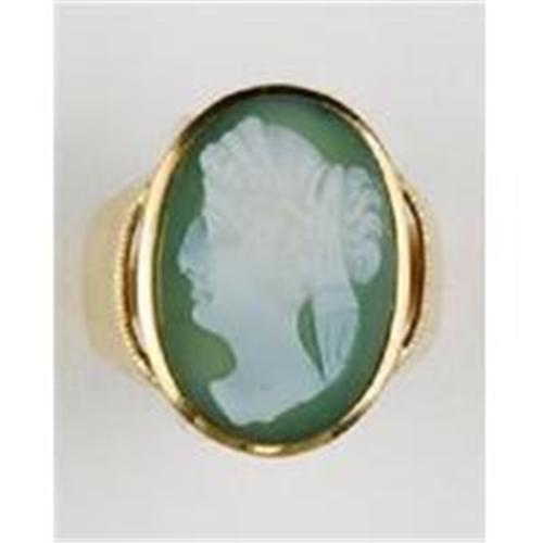 <tr><td>Title: ANTIQUE 14K GOLD CAMEO Ring GREEN ONYX</td></tr>