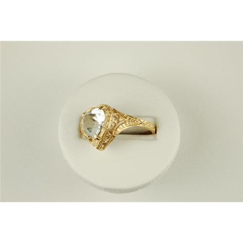 Antique Style 14k Yellow Gold Ring featuring a HEART Shaped Blue Topaz = 2.55 CARATS! The Topaz is surrounded by beautiful yellow gold filigree work. This ring is a size 6 3/4 and I can resize it for you.