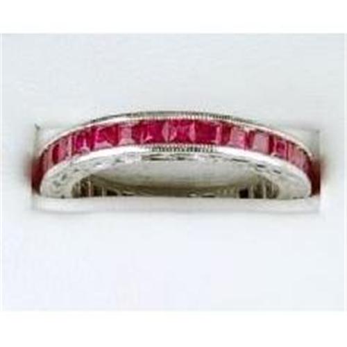This RUBY Eternity Band is an Authentic & Accurate copy of a band from the 1930s' and THIS one is in Mint condition! It is a 14k White Gold Eternity Wedding Band with Genuine RUBIES set all around. The RUBY Total Weight = TWO CARATS! There is exquisite engraving either side of the Wedding Band. This ring is a Size 6 and it cannot be resized.