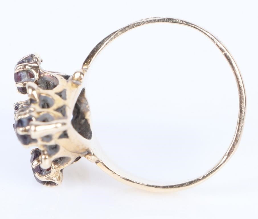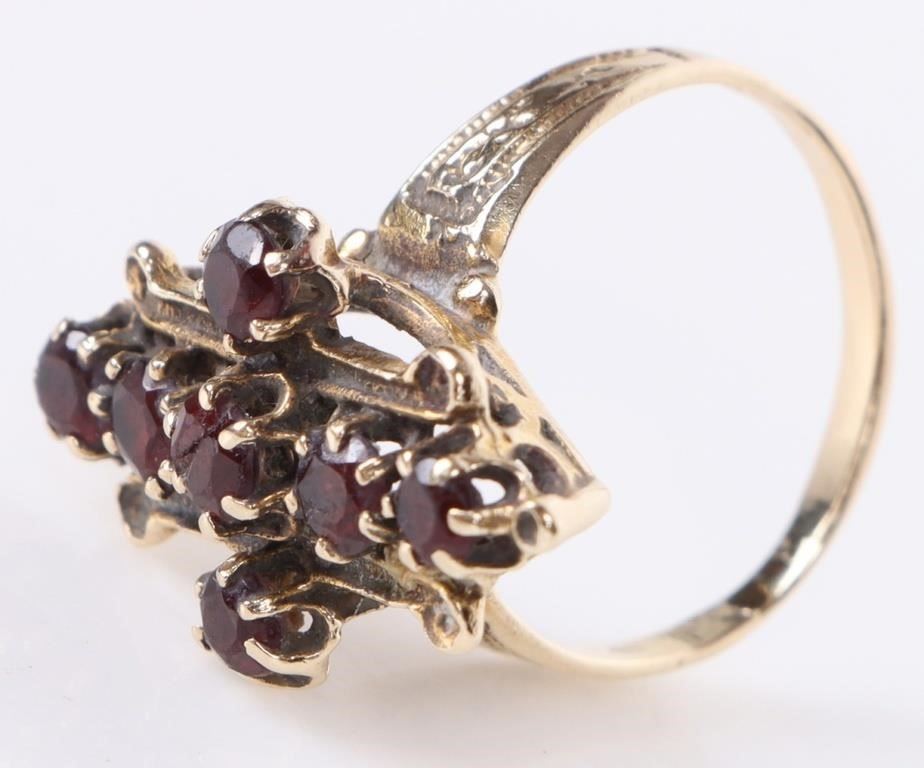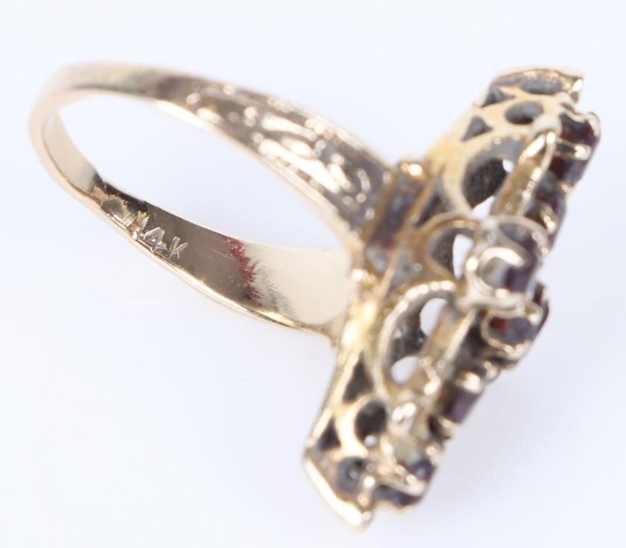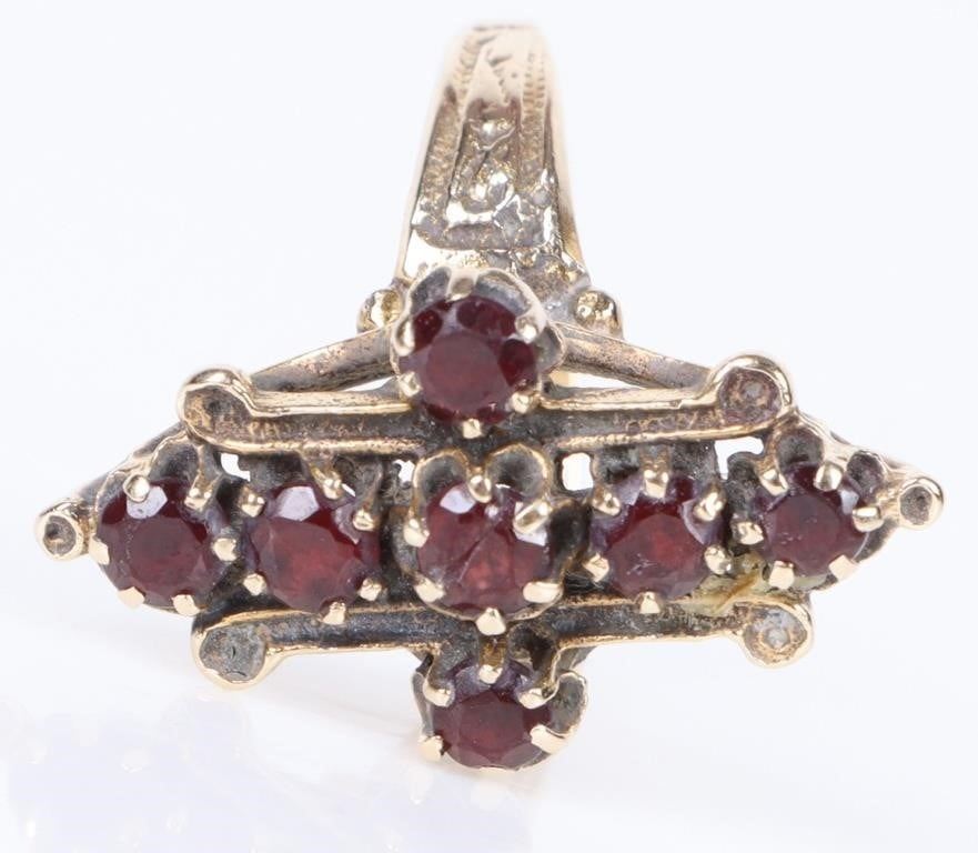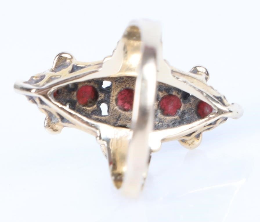Antique 14k yellow gold garnet cross ladies ring.