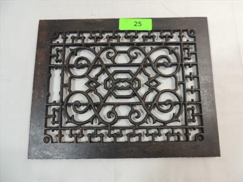 ANTIQUE 14X11 CAST IRON ORNATE FLOOR AIR GRATE. NO MAKER MARK. AS SHOWN. VIEW PICTURE FOR DETAIL.