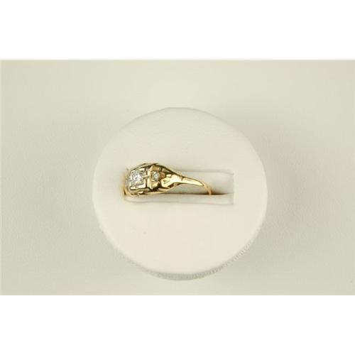 This Vintage ENGAGEMENT Ring is Circa 1940 and it is in Superb condition! It is 14k Yellow Gold and it features a SPARKLING .15 Carat Diamond of FINE 'SI1' Quality and FINE 'G' Color. There is a small Diamond set each side as accent. The ring is a Size 6 1/4 and I can resize it for you.