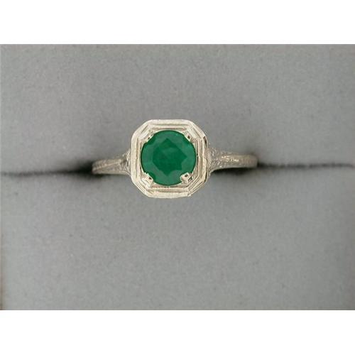 Antique 14k White Gold ring featuring a Genuine Emerald = .24 CARATS! The Emerald is surrounded by very beautiful filigree work.