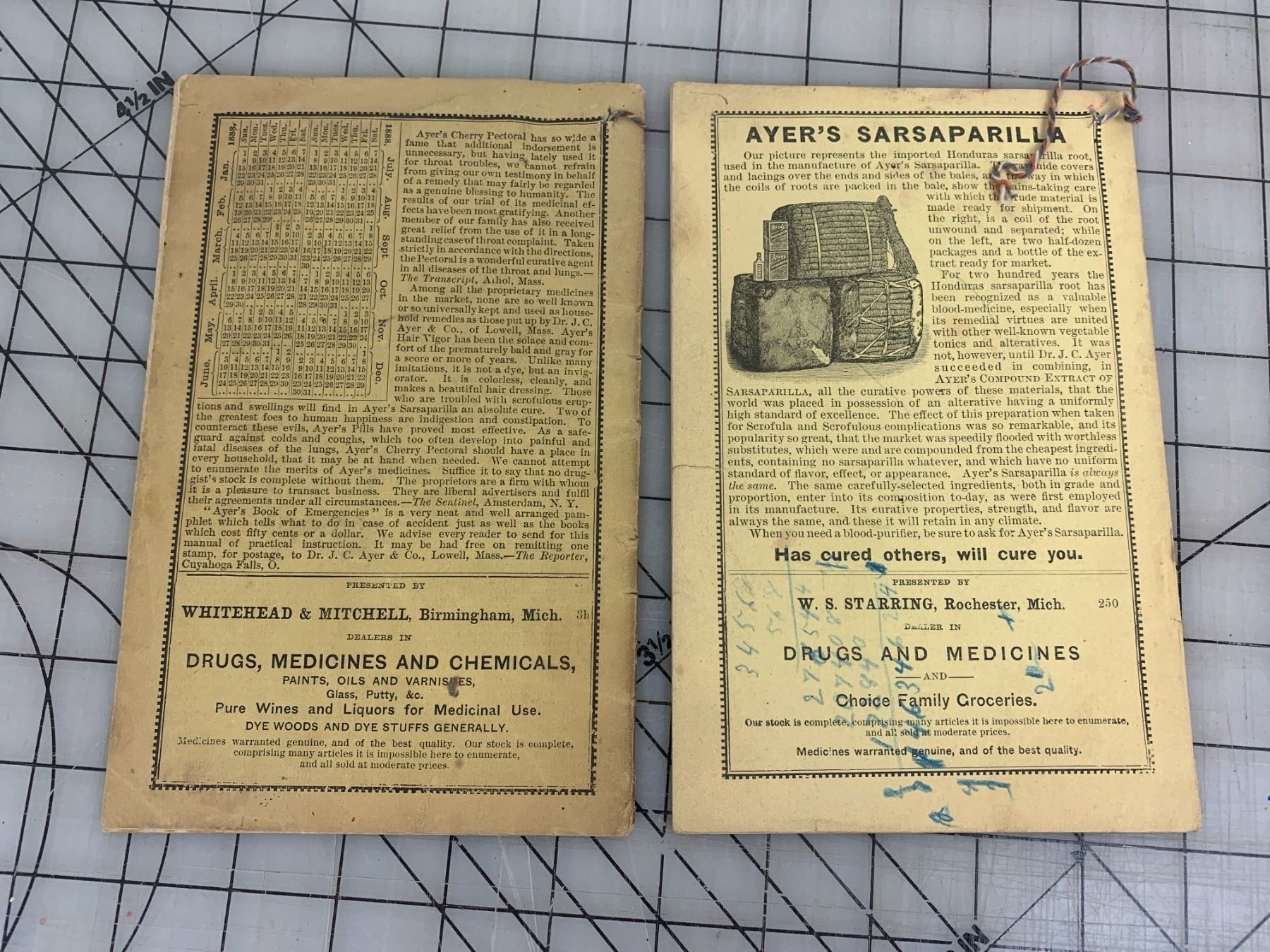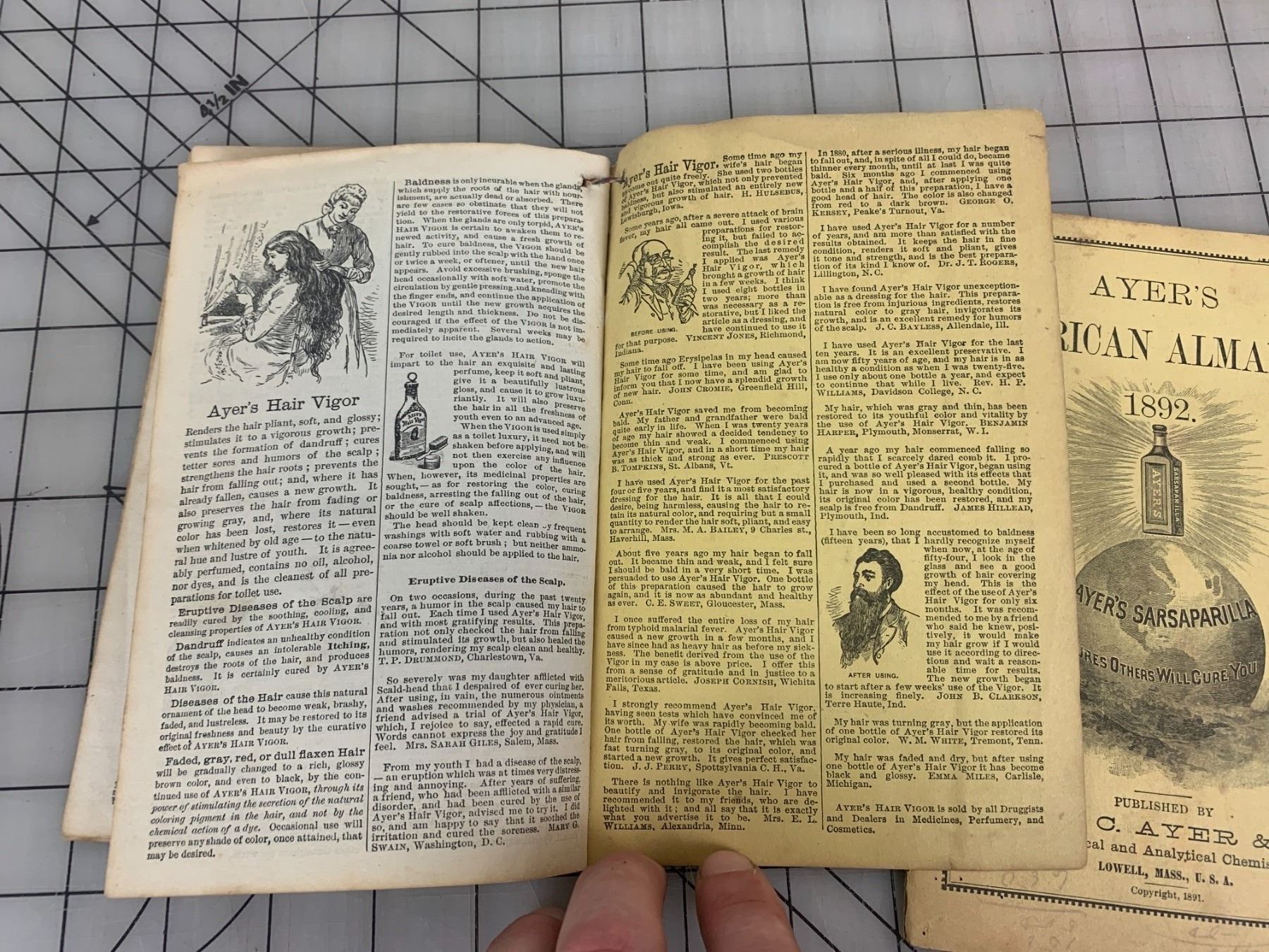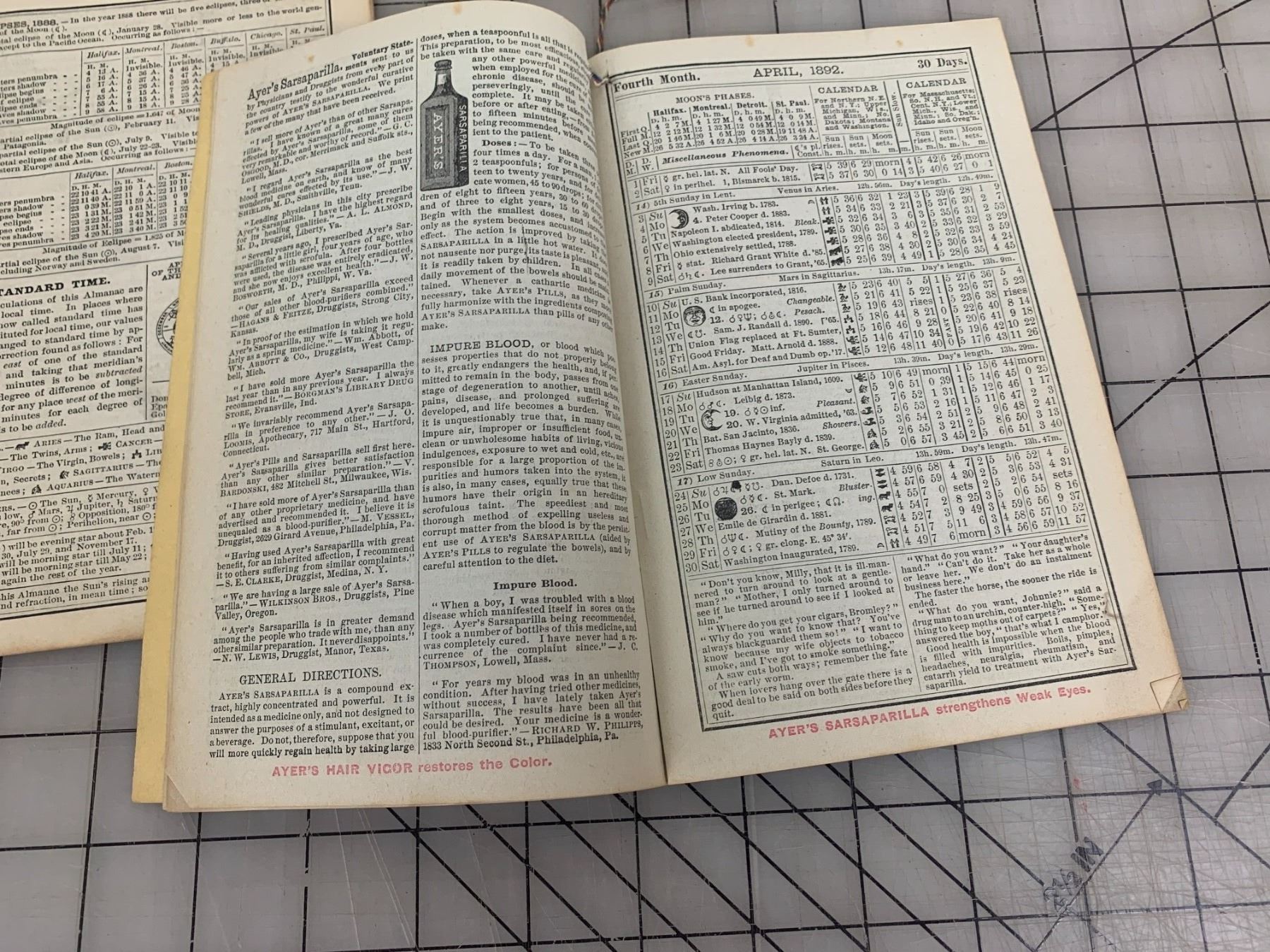 ANTIQUE 1888 AND 1892 AYERS AMERICAN ALMANACS