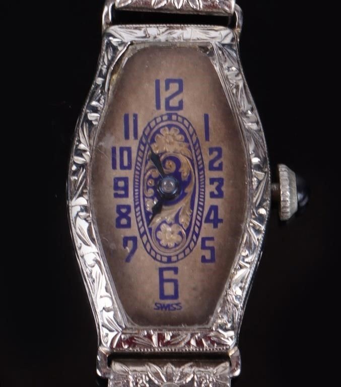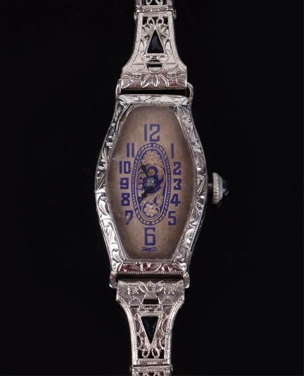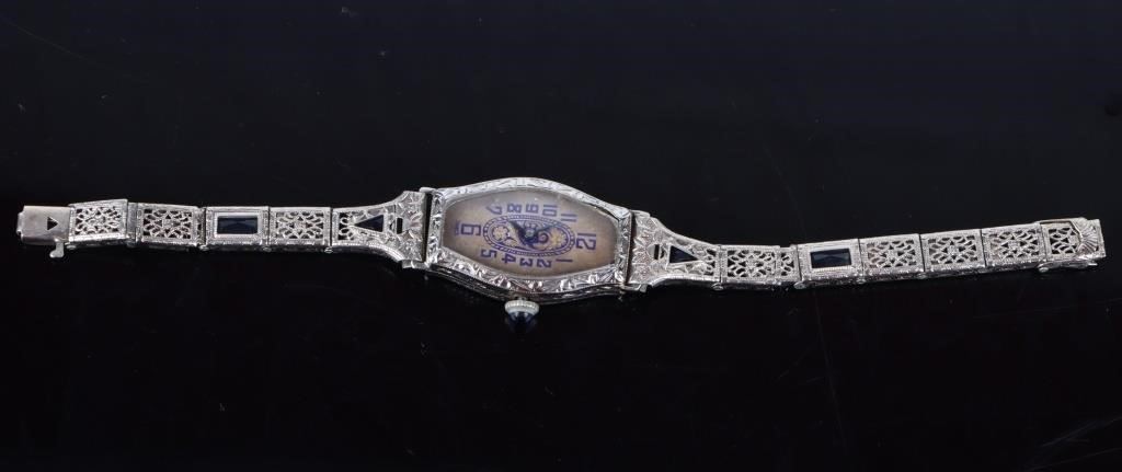 Antique 18K white gold 1920's art deco ladies watch. Very intricate filigree design.