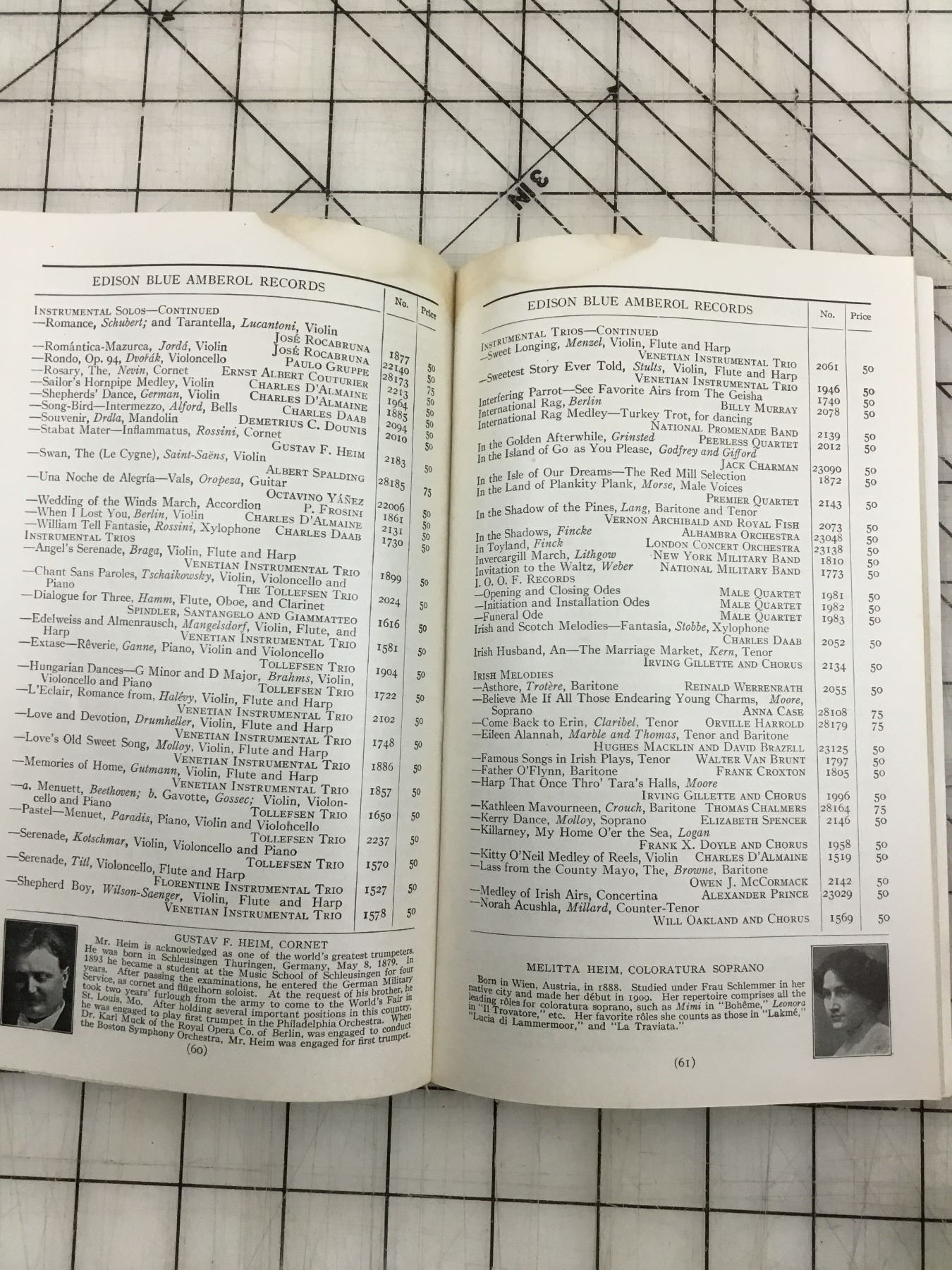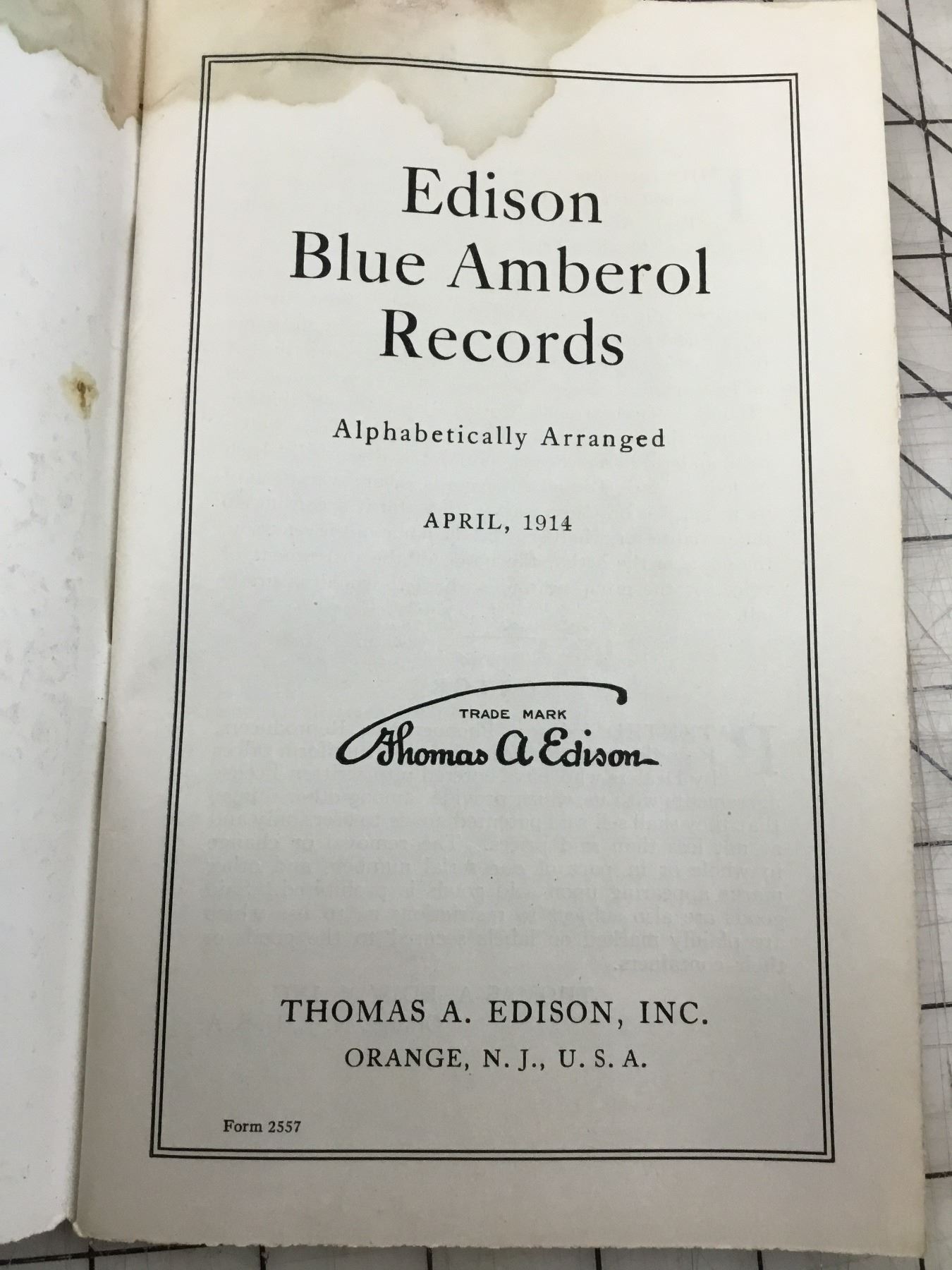 ANTIQUE 1914 EDISON CYLINDER RECORDS CATALOG BLUE AMBEROL