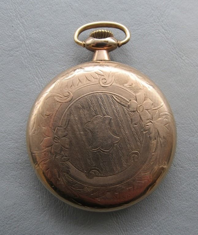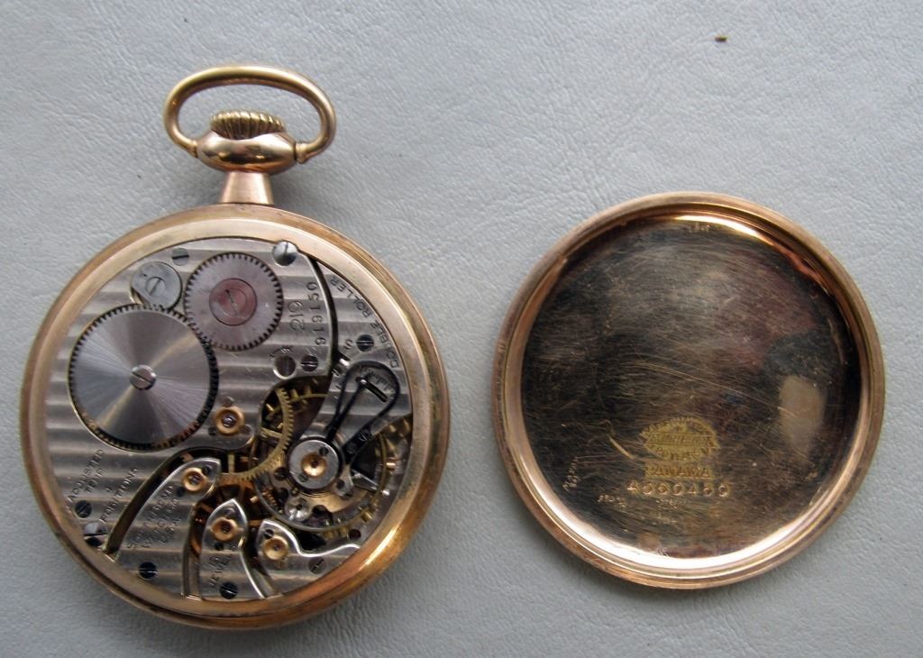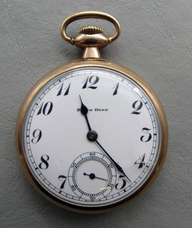 GRADE 219, 19 JEWELS, SIZE 16, SERIAL NO. 919150. RUNNING FINE. CRACKED CRYSTAL. BEAUTIFUL 20 YEAR GOLD FILLED SOUTH BEND PANAMA CASE. NO HAIRLINES IN THE DIAL.
