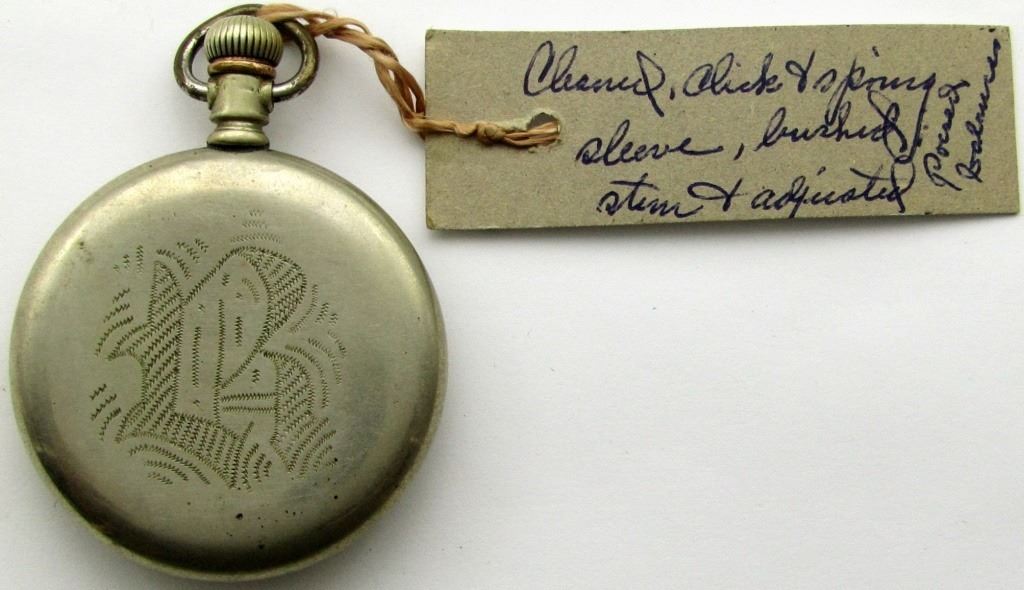 GRADE 303, SIZE 12, 7 JEWELS. NEEDS A LIGHT CLEANING. CASE BY TRADE MARK STAR & CRESCENT. ONE SMALL CHIP IN THE DIAL AT 6'O'CLOCK.
