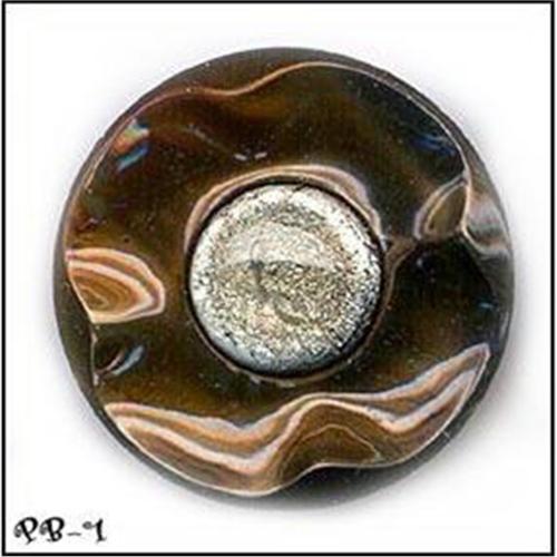 </font></strong>This button is part of our museum quality button collection. Many collectors who visited our shop had a chance to view all of them, and although interested, they were not for sale at the time. Well, after 9 years of these buttons being on display, we decided to part with them. Since we don't collect buttons, we're hoping that each button will find a new home, where it will be appreciated at least as much as it was here.... Originally these buttons were part of HUGE 10 000 pc lot, all on original manufacturers sample cards, with each button being different. This lot was sold years ago to a dealer/collector. We kept these buttons because most of them fell off the cards, due to the age and fragility of the paper/cards. We'll be offering these buttons on Ebay over the next few weeks, so if you are one of the people interested in the past, here is your chance. Needless to say - you are bidding on extremely scarce, MUSEUM QUALITY button. Description: Beautiful 2-piece antique button with round, dome shaped silver foil embedded centerpiece. Outer piece is made of slightly translucent brown "Mother of Pearl" glass, which is 1-1/4 inches in diameter (Large) and 10-12mm thick over the centerpiece. 4 way brass box shank, Bohemia/Czechoslovakia circa 1890-1920. Multiple purchase of buttons will save on shipping - we'll combine shipping cost. </font>