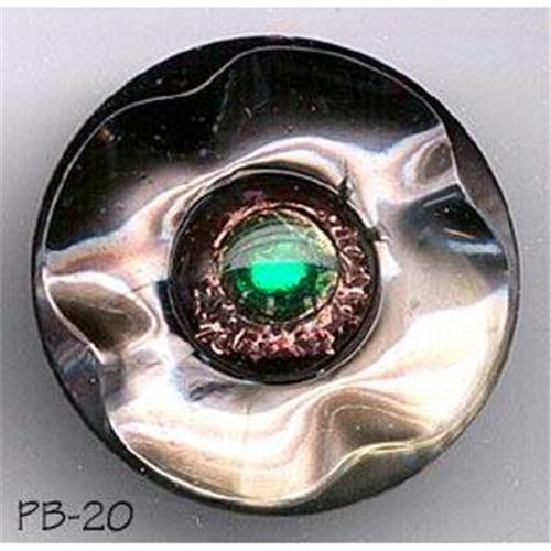 This button is part of our museum quality button collection. Many collectors who visited our shop had a chance to view all of them, and although interested, they were not for sale at the time. Well, after 9 years of these buttons being on display, we decided to part with them. Since we don't collect buttons, we're hoping that each button will find a new home, where it will be appreciated at least as much as it was here.... Originally these buttons were part of HUGE 10 000 pc lot, all on original manufacturers sample cards, with each button being different. This lot was sold years ago to a dealer/collector. We kept these buttons because most of them fell off the cards, due to the age and fragility of the paper/cards. We'll be offering these buttons on Ebay over the next few weeks, so if you are one of the people interested in the past, here is your chance. Needless to say - you are bidding on extremely scarce, MUSEUM QUALITY button. Description: Beautiful 2-piece antique button with round, dome shaped foil embedded centerpiece. This type is called "Peacock Eye". Outer piece is made of slightly translucent gray "Mother of Pearl" glass, which is 1-1/4 inches in diameter (Large) and 10-12mm thick over the centerpiece. 4 way brass box shank, Bohemia/Czechoslovakia circa 1890-1920. Multiple purchase of buttons will save on shipping - we'll combine shipping cost.