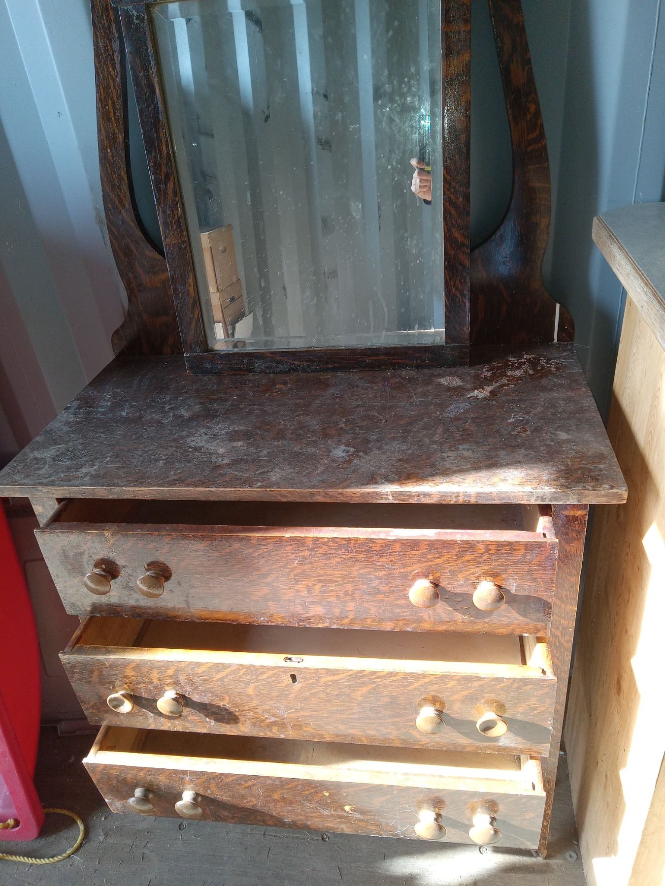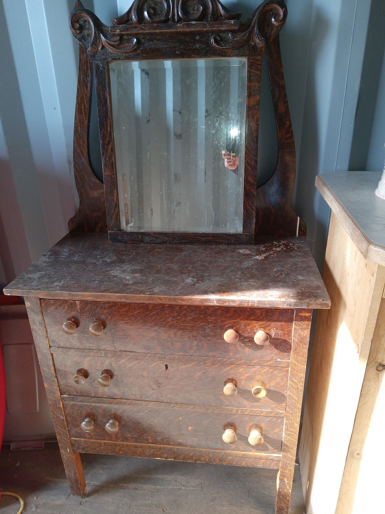 ANTIQUE 3-DRAWER DRESSER w/2 FRAMES.