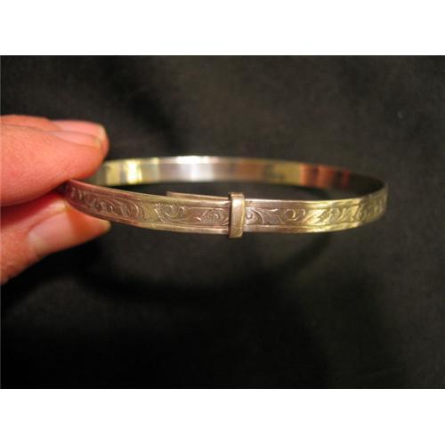235-07. A lovely antique 800 silver bangle bracelet with ornate design. It is a buckle type bangle that opens and slides back together. It is marked 800 and the maker's mark which appears to be A & D. It is a very petite piece. The interior is oval shaped measuring approx. 2 and 3/8 inches by 2 inches. If you wrap a tape measure around the bracelet when it is closed, it is approx. 6 and 3/4 inches. It is approx. 1/4 of an inch wide. Very old lovely piece of jewelry. May have been made for a youth or child. Ships from the USA to the USA for $5.95. Ships to Europe, Canada, Japan and Australia for $19.95. Paypal users must have a confirmed address.