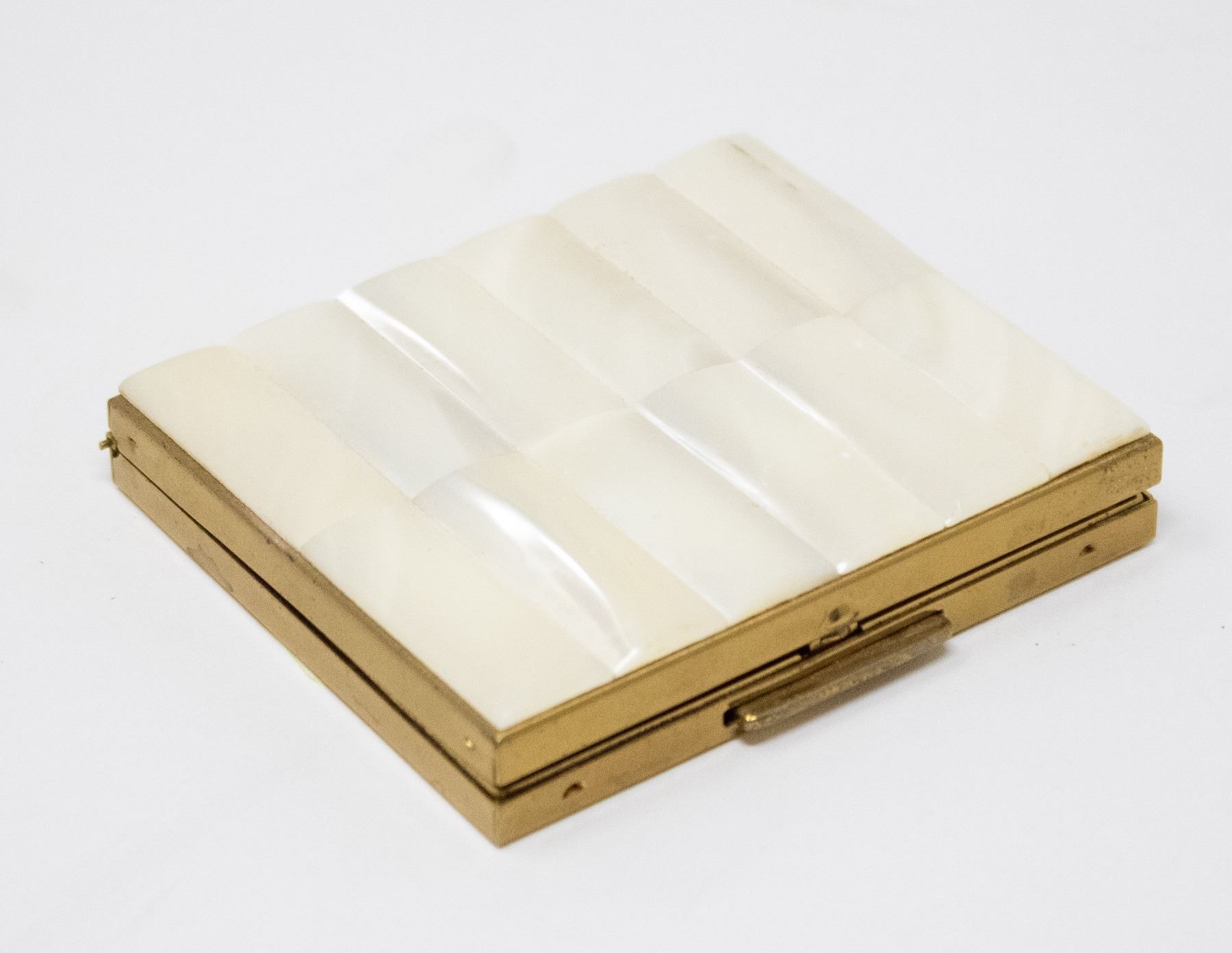 ANTIQUE ABALONE SHELL INLAID LADIES COMPACT