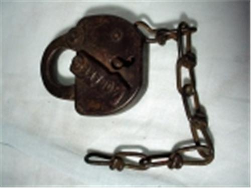 ANTIQUE ADLAKE RAILROAD SWITCHBOX LOCK. MARKED AT & F RAILWAY. 4".