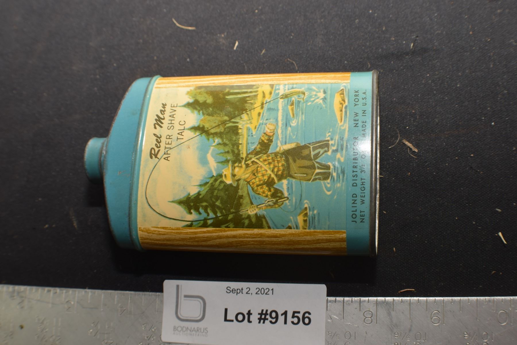 ANTIQUE AFTER SHAVE TIN WITH SUPER FISHING GRAPHICS