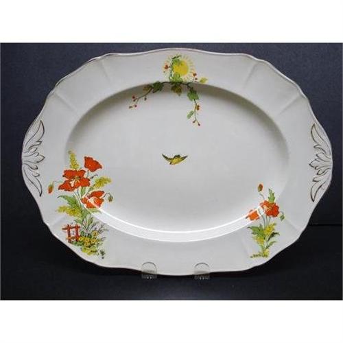 THIS IS BEAUTIFUL LARGE ANTIQUE OVAL PLATTER,MADE BY ALFRED MEAKIN, ENGLAND, LOVE THE UNIQUE DECORATIONS, RED POPPIES AND THE TINY BIRD - Please see our images - VERY FINE CONDITION, NO CHIPS NO CRACKS, Measuring about 14 1/2" x 10 1/2", US Buyer to pay 14.00 (heavy) for shipping plus insurance.THANKS.