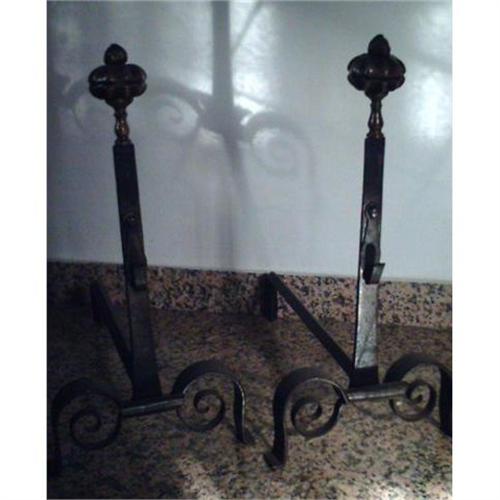 ABSOLUTELY ORIGINAL ANDIRONS FIREDOGS CHENETS. BRASS AND HANDMADE IRON. EUROPEAN ORIGIN,FROM ITALY. LOOK AT THE CURLY FOOT. SUCH A WONDERFUL PIECE COMING FROM HISTORY!