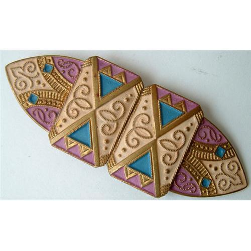 GREAT ART DECO ENAMEL BUCKLE IN PASTEL PINK,BLUE AND CREAM ENAMELS