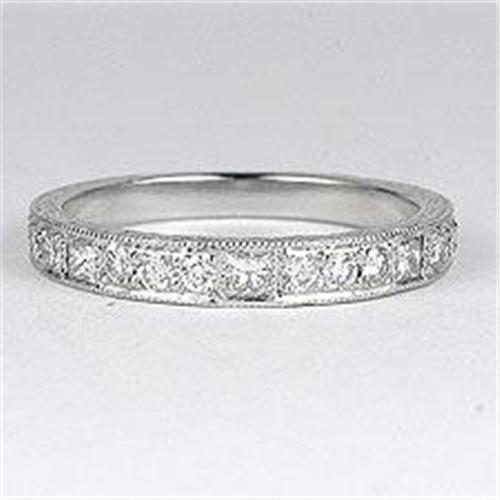 This ANTIQUE Style ART DECO Wedding Band is an AUTHENTIC and ACCURATE copy of a Wedding Band from the 1920's but THIS one is in MINT condition. It is 14k White Gold and it features 3 FINE PRINCESS CUT DIAMONDS and 12 bead set DIAMONDS with a TOTAL WEIGHT = .50 CARATS! The Diamonds are all the FINEST 'VS' Quality and 'G' Color. It is currently a Size 6 1/4 and it can be resized both larger and smaller.