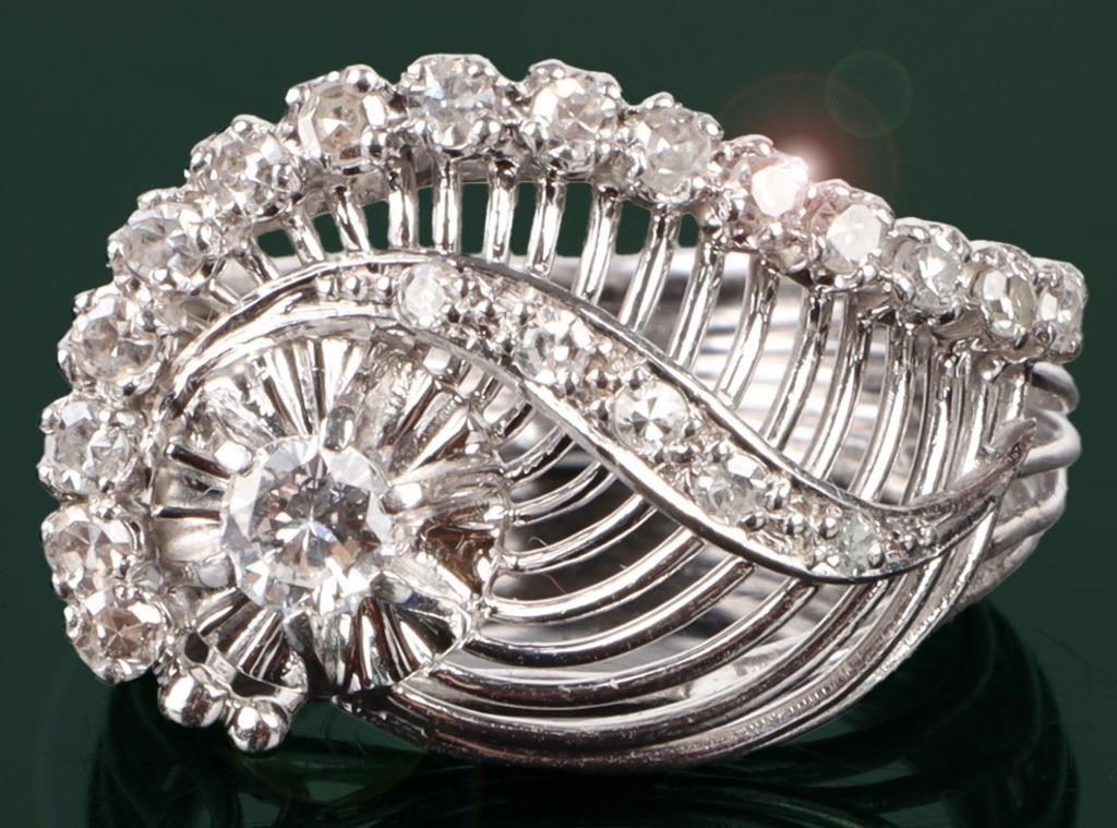 Antique art deco platinum & quot;eye& quot; openwork natural diamond ring. Ring is ~0.65CTW