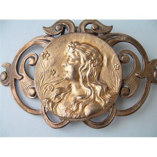 GOOD ART NOUVEAU BUCKLE. MOST OF THE GILT IS PRESENT.
