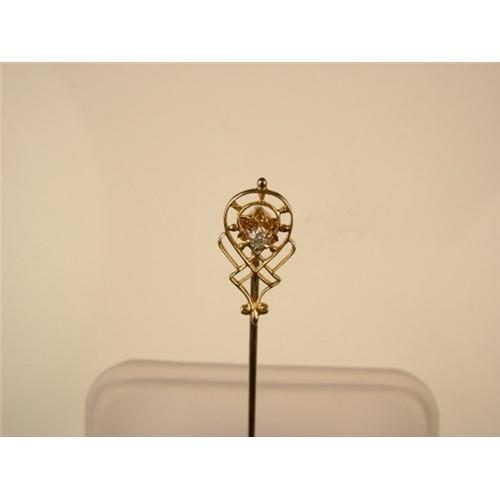 THIS ANTIQUE ART NOUVEAU GOLD STICKPIN IS CIRCA 1900 AND IT IS IN EXCELLENT CONDITION! The Stickpin is 10K Yellow Gold and it features a wonderful Gold Frame with openwork surrounding a SPARKLING DIAMOND = .02 CTS. This Antique Gold Stickpin has a MAKERS MARK for FEINSTEIN & COMPANY of New York City.