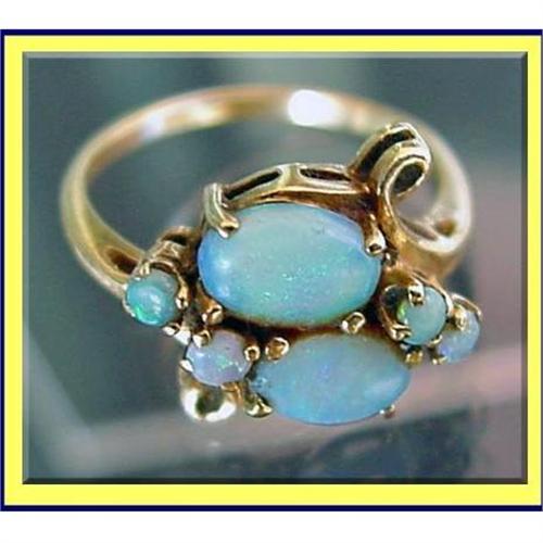 </font></strong>Antique Arts and Crafts ring made of 14 carat gold set with opals. Made late 19th - early 20th century.<P>