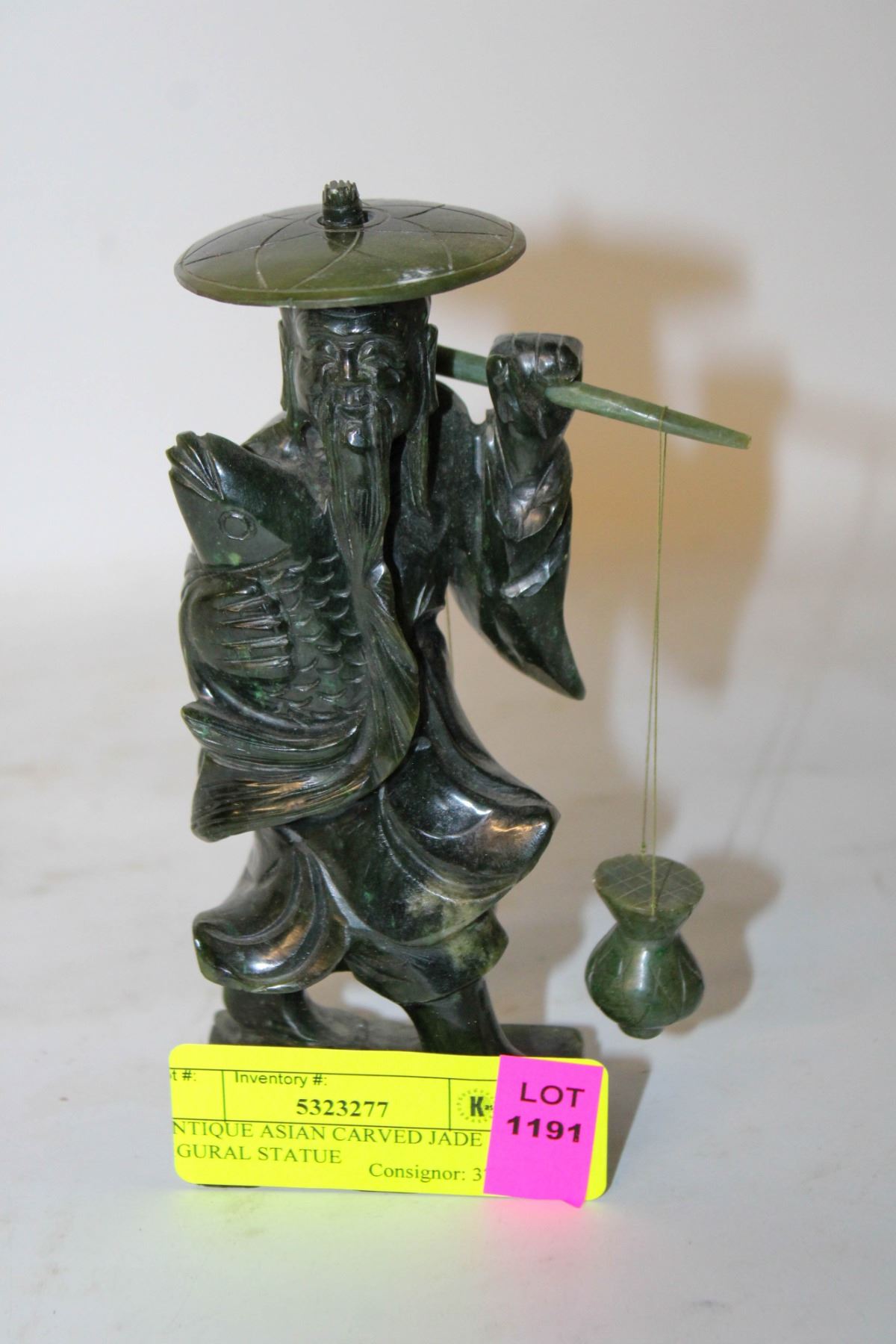 ANTIQUE ASIAN CARVED JADE FIGURAL STATUE
