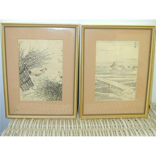 Very nice intricately detailed and charming Asian ink/watercolor framed paintings! These are signed and we believe these date to the early 1900's or possibly earlier. We love the rice fields and the chickens!