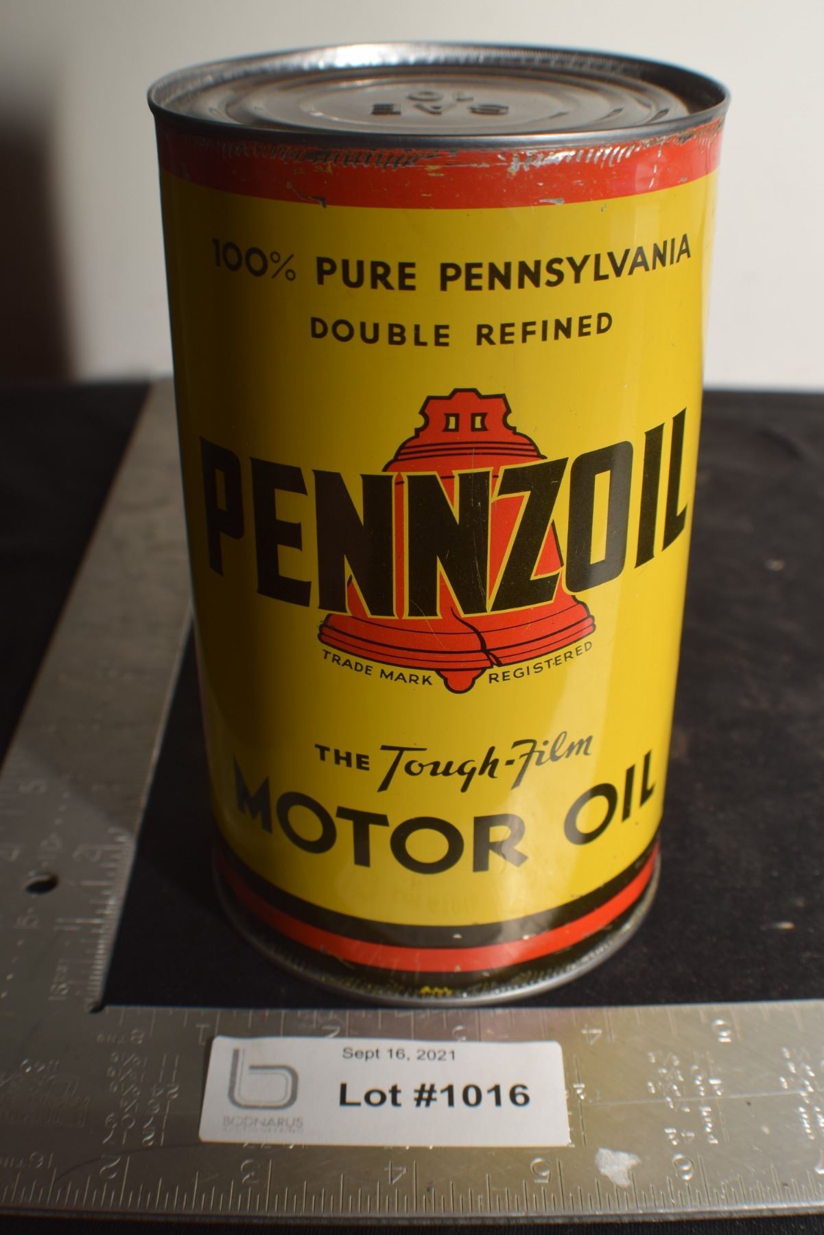ANTIQUE B/A PENNZOIL QUART OIL TIN , THIS IS A RE-ROLL NOT A NEWER WRAP