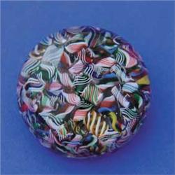 Lot 89 ANTIQUE BACCARAT MACEDOINE PAPERWEIGHT. Various colored twist canes. SIZE: 2-3/8” dia. CONDITION: One chip on base. 5-69132 (400-600)
