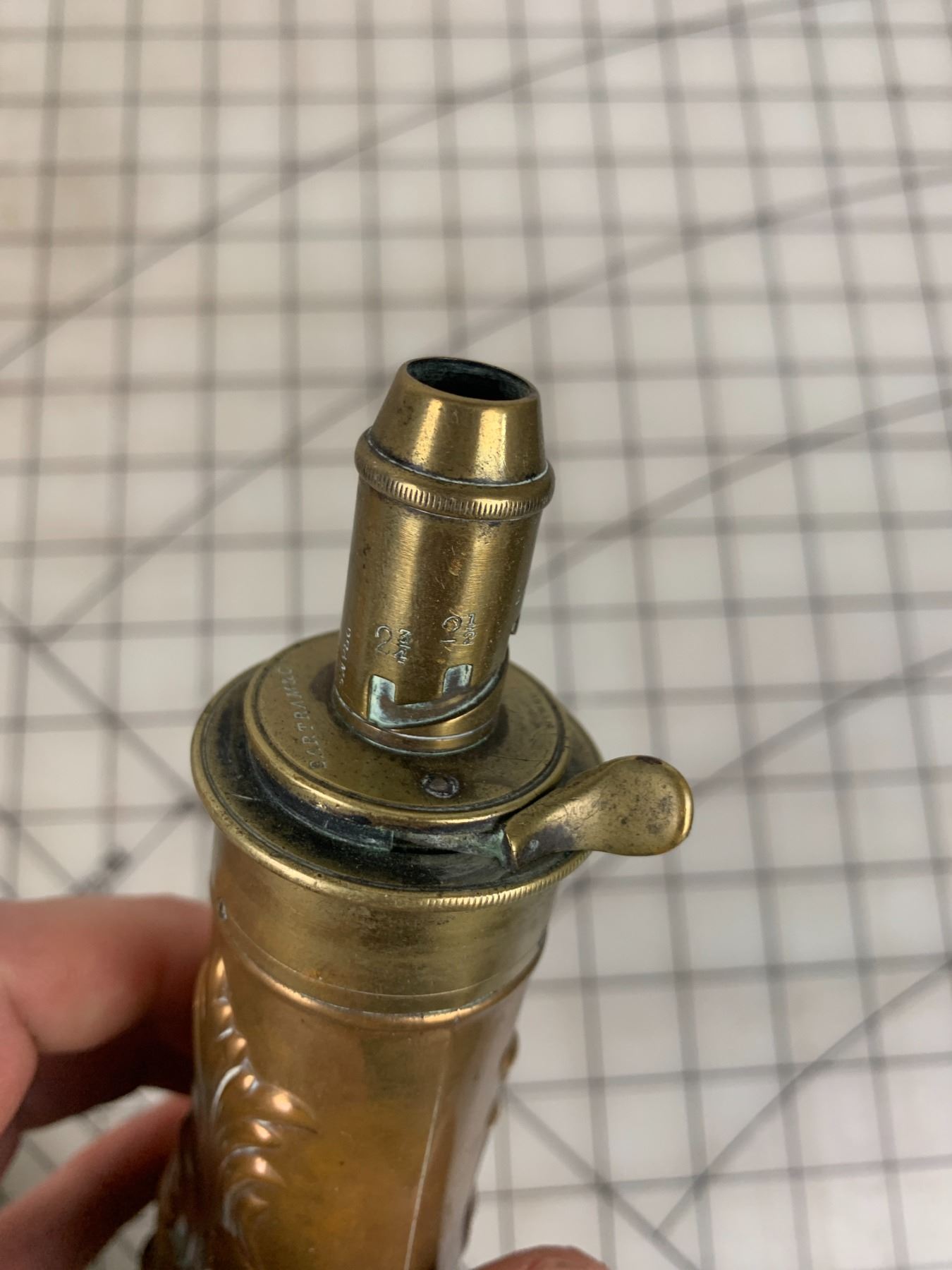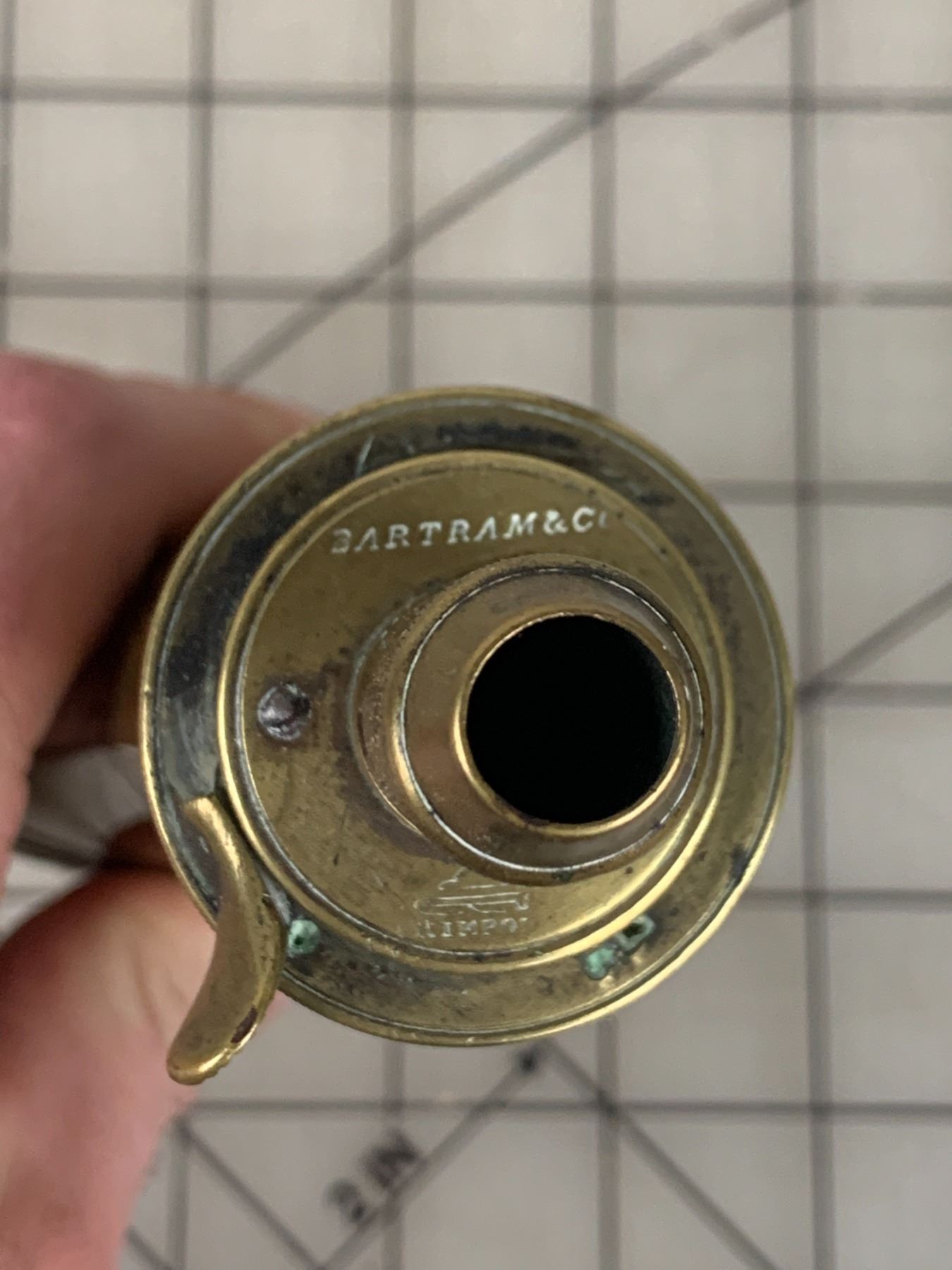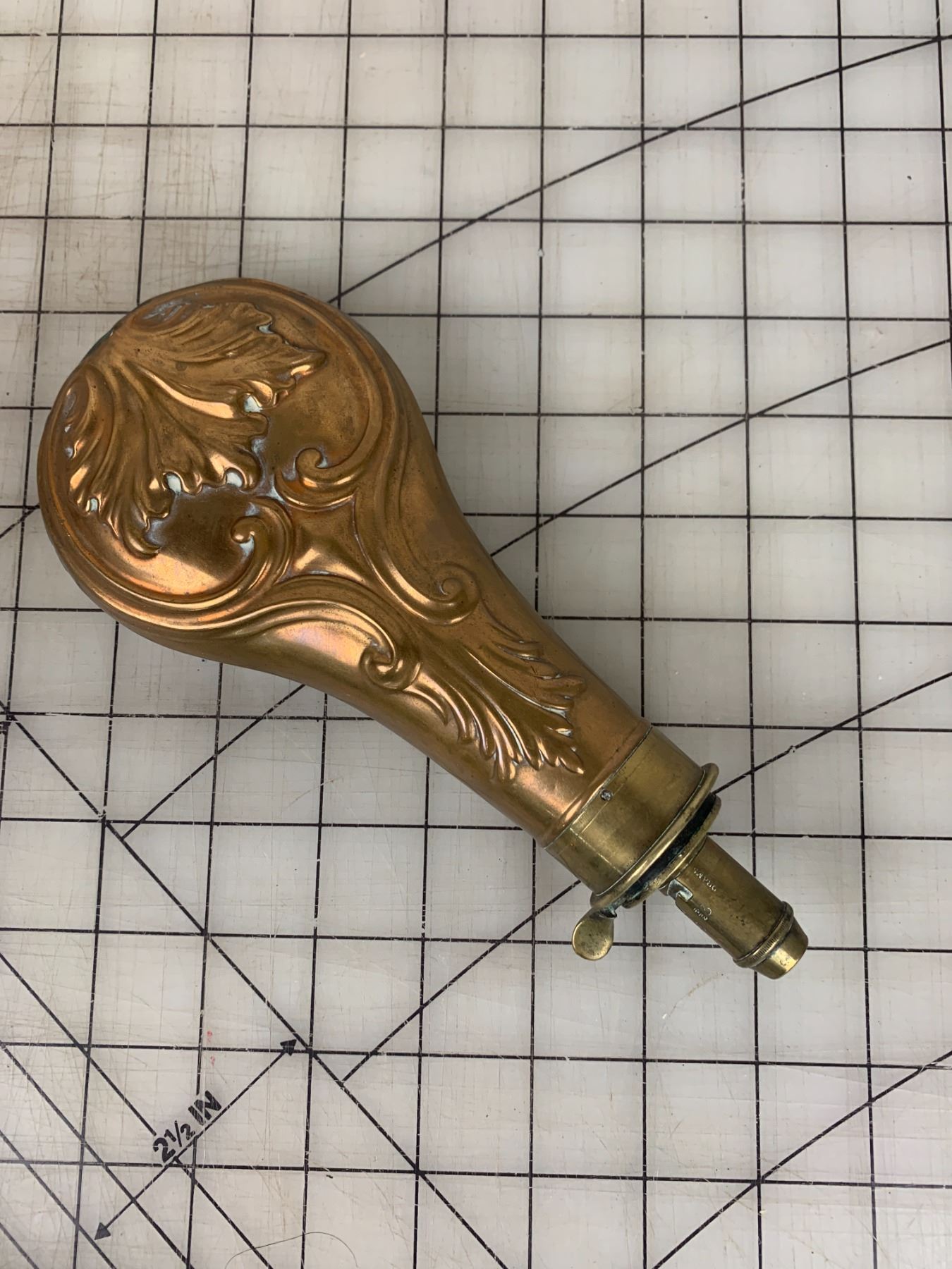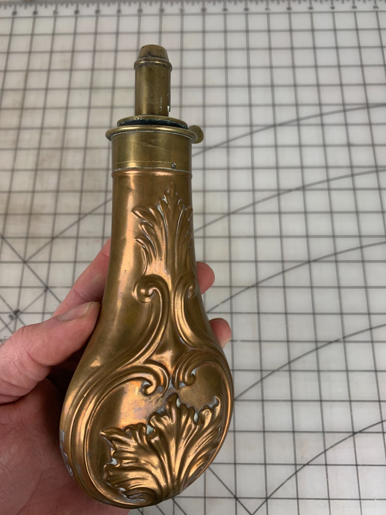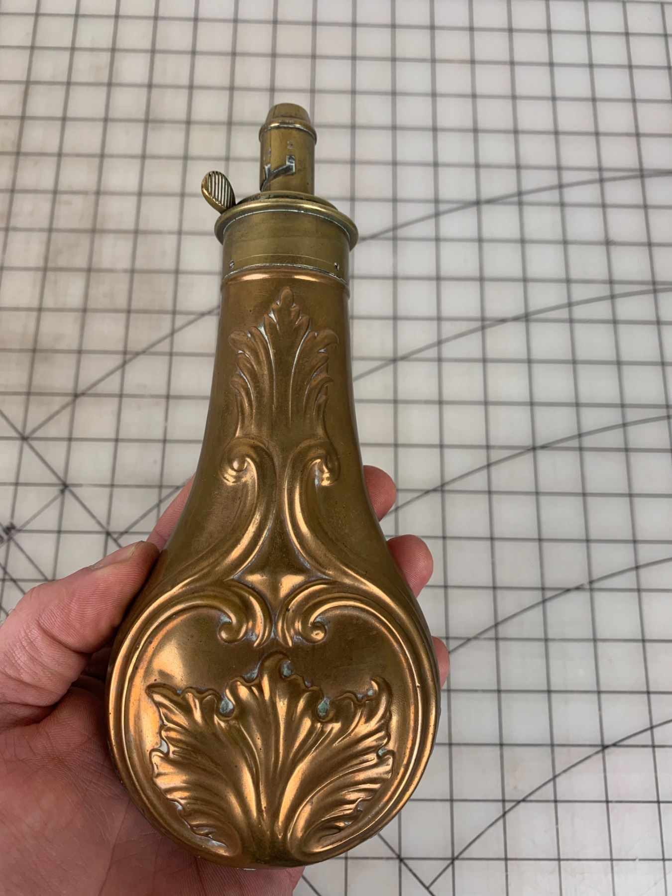 ANTIQUE BARTRAM & CO GUNPOWDER FLASK