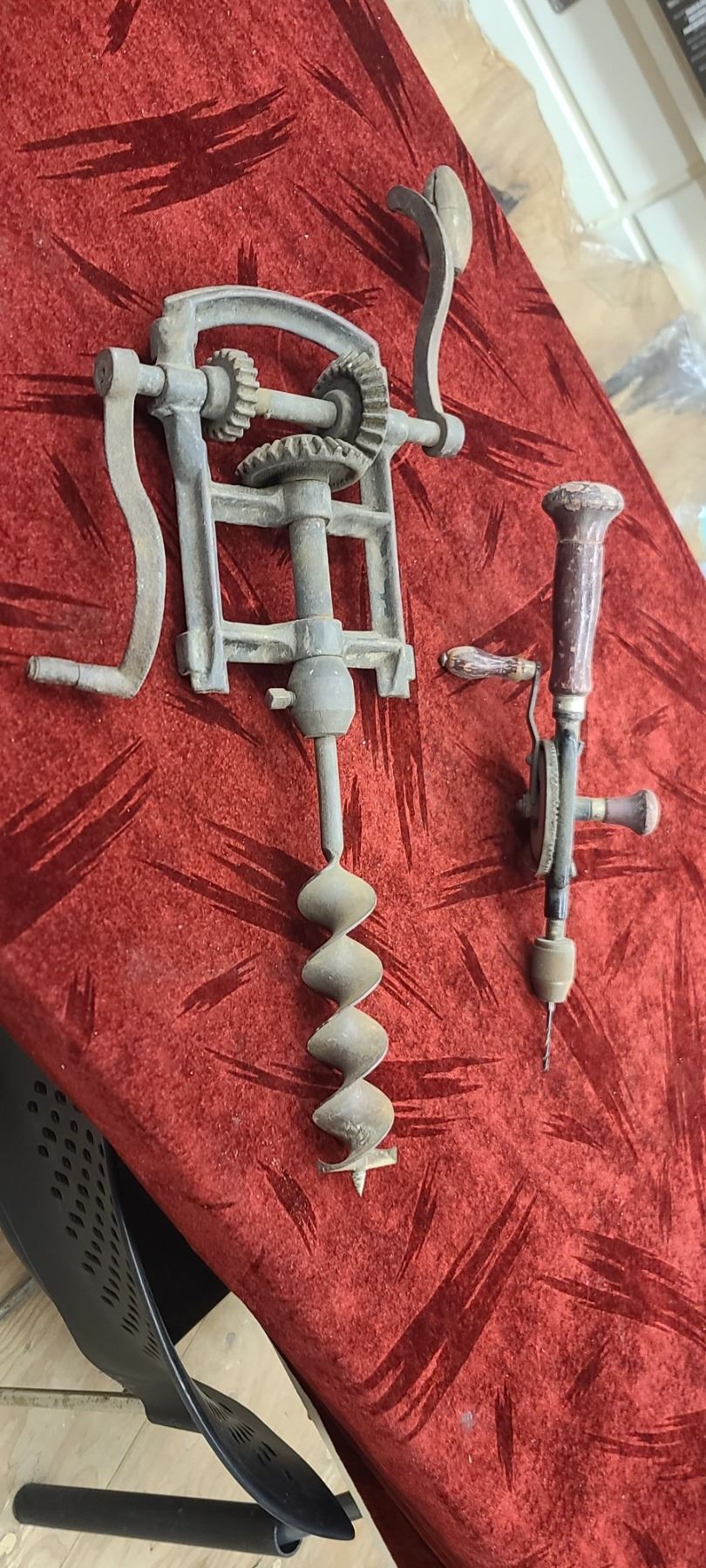 ANTIQUE BEAM AUGER/DRILL AND HAND DRILL
