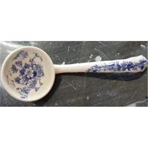 EARLY BLUE DELFT SPOON OR LADLE; VERY NICE DELFT PATTERN WITHOUT ANY CRACKS, CHIPS OR HAIRLINES