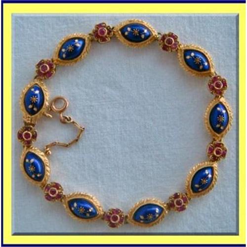 <tr><td>Title:ANTIQUE BLUE ENAMEL 18K GOLD AND RUBY BRACELET</td></tr>
