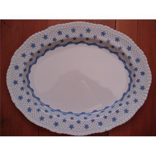 Beautiful antique English Ridgeway blue transferware large platter in the Columbian Star pattern. The platter measures 14 inches by 11 inches, in wonderful condition-no chips or cracks. Lovely to use or display!
