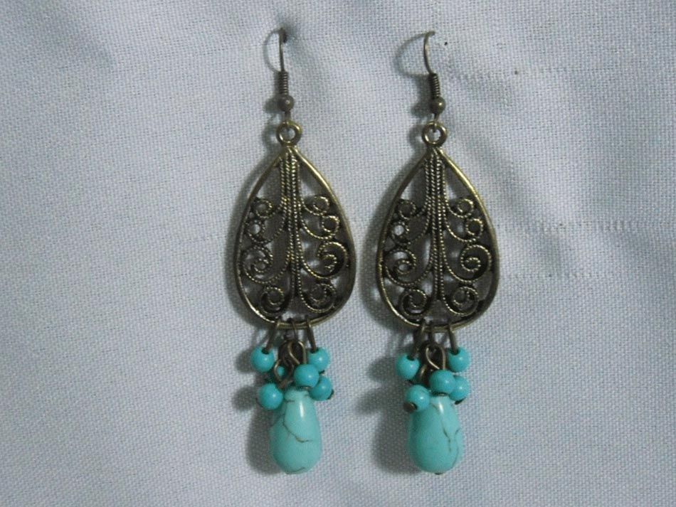 ANTIQUE BLUE TURQUOISE DANGLING EARRINGS STONE BLUE TUR **|**|** ANTIQUE BLUE TURQUOISE DANGLING EARRINGS STONE BLUE TURQUOISE METAL BRASS ; MSRP: $150