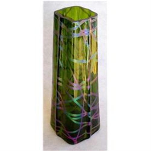 Outstanding, museum quality Bohemian blown Art glass vase with rainbow ieidescent silver trails on translucent forest green glass. Excellent condition, no chips, cracks or repairs. Dimension : 10 inches high. Made by Wilhelm Kralik Sohne, Bohemia circa 1900.