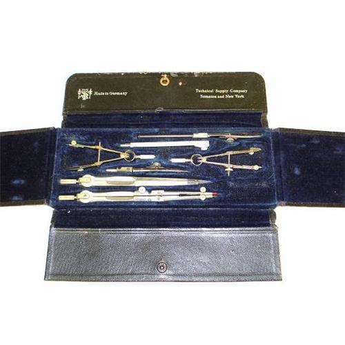 THIS IS VERY NICE DRAFTING TOOLS SET,COMES IN ORIGINAL CASE, MARKED: MADE IN GERMANY AND TECHNICAL SUPPLY COMPANY SCRANTON AND NEW YORK, IT SEEMS TO BE COMPLETE, AND IT SEEMS TO ME IN VERY GOOD CONDITION, BUT ONE PIECE DOES HAVE SOME VERY LIGHT OXIDATION, WHICH COULD BE CLEANED.US Buyer to pay 8.00 for shipping plus insurance.THANKS.