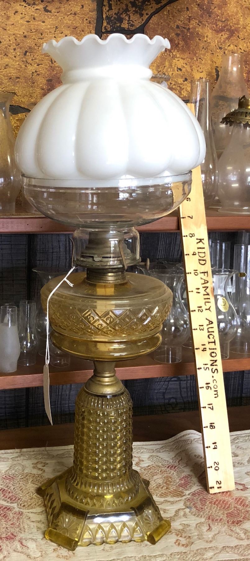 ANTIQUE BRASS AND GLASS OIL LAMP