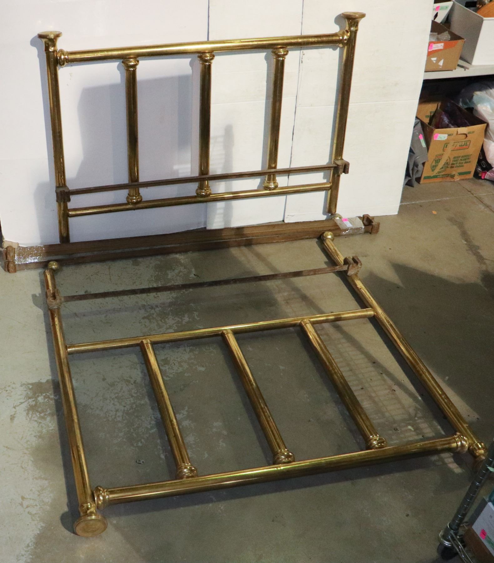 ANTIQUE BRASS BED FRAME DOUBLE SIZE HAS CASTORS,