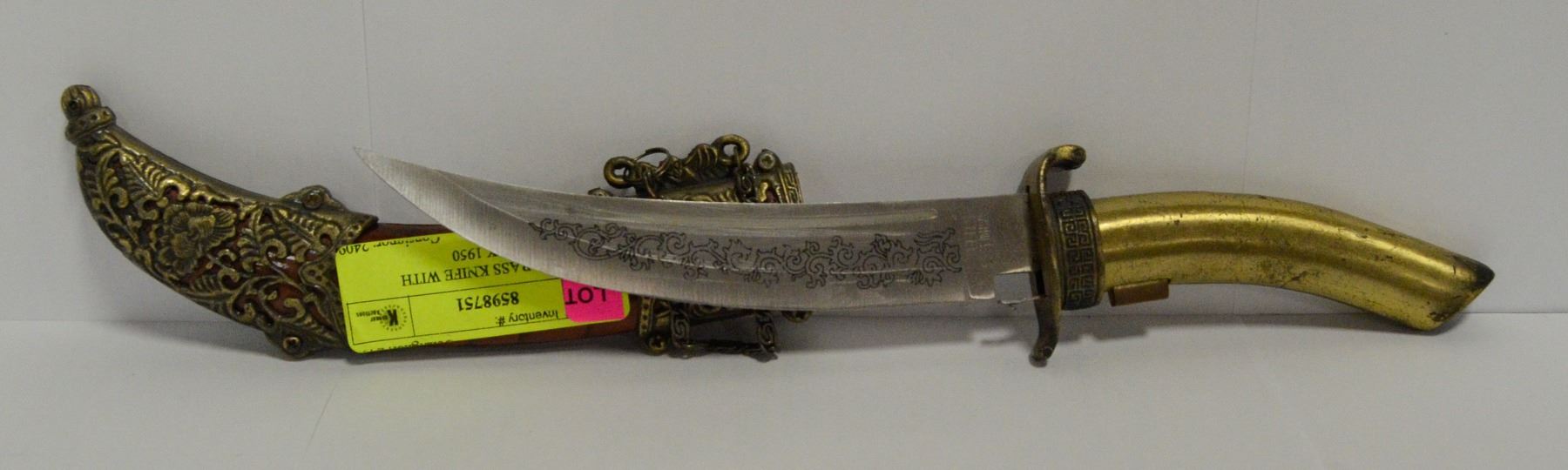 ANTIQUE BRASS KNIFE WITH SHEATH APPROX 1950'S