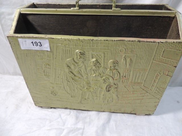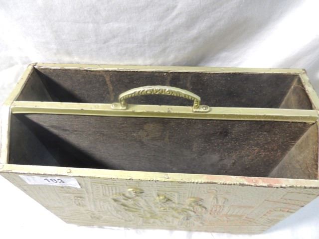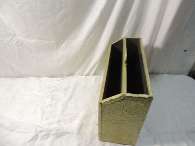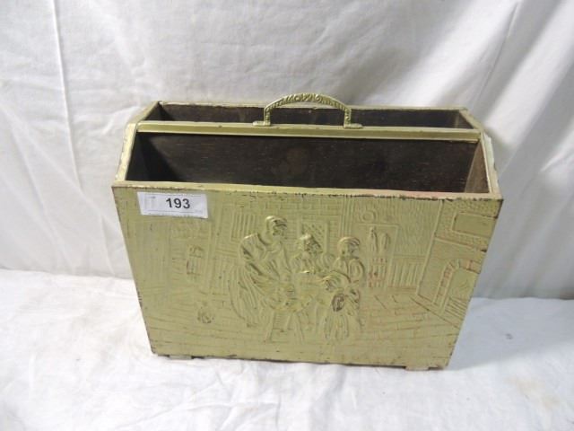 ANTIQUE BRASS OVER WOOD MAGAZINE NEWSPAPER RACK