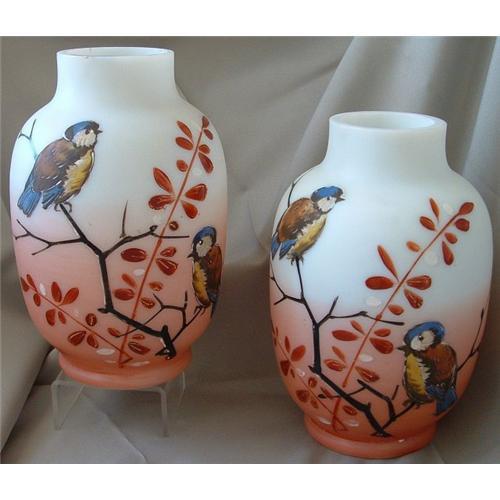 VERY FINE BRISTOL ENAMELED BIRD VASES.