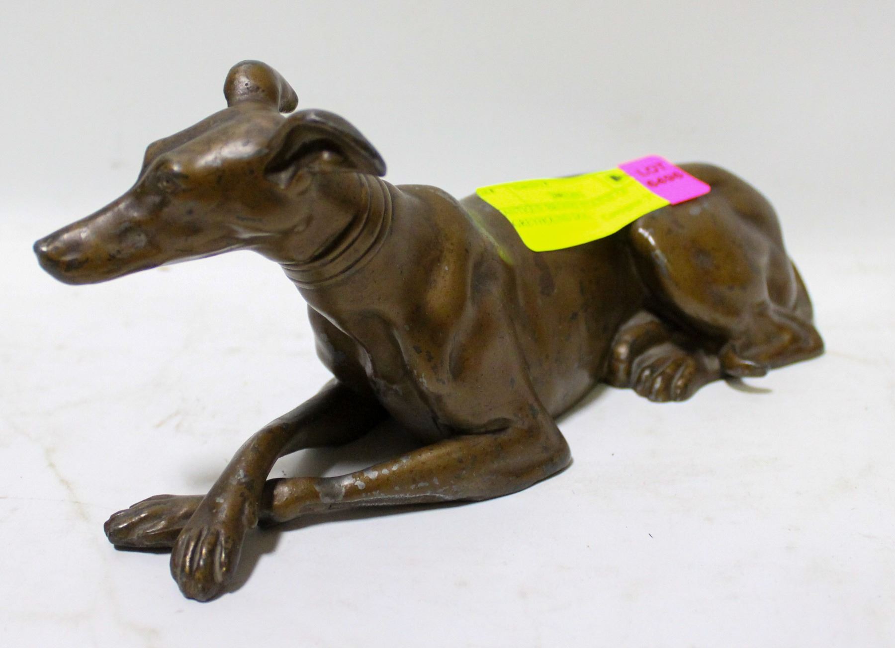 ANTIQUE BRONZE STATUE OF GREYHOUND DOG