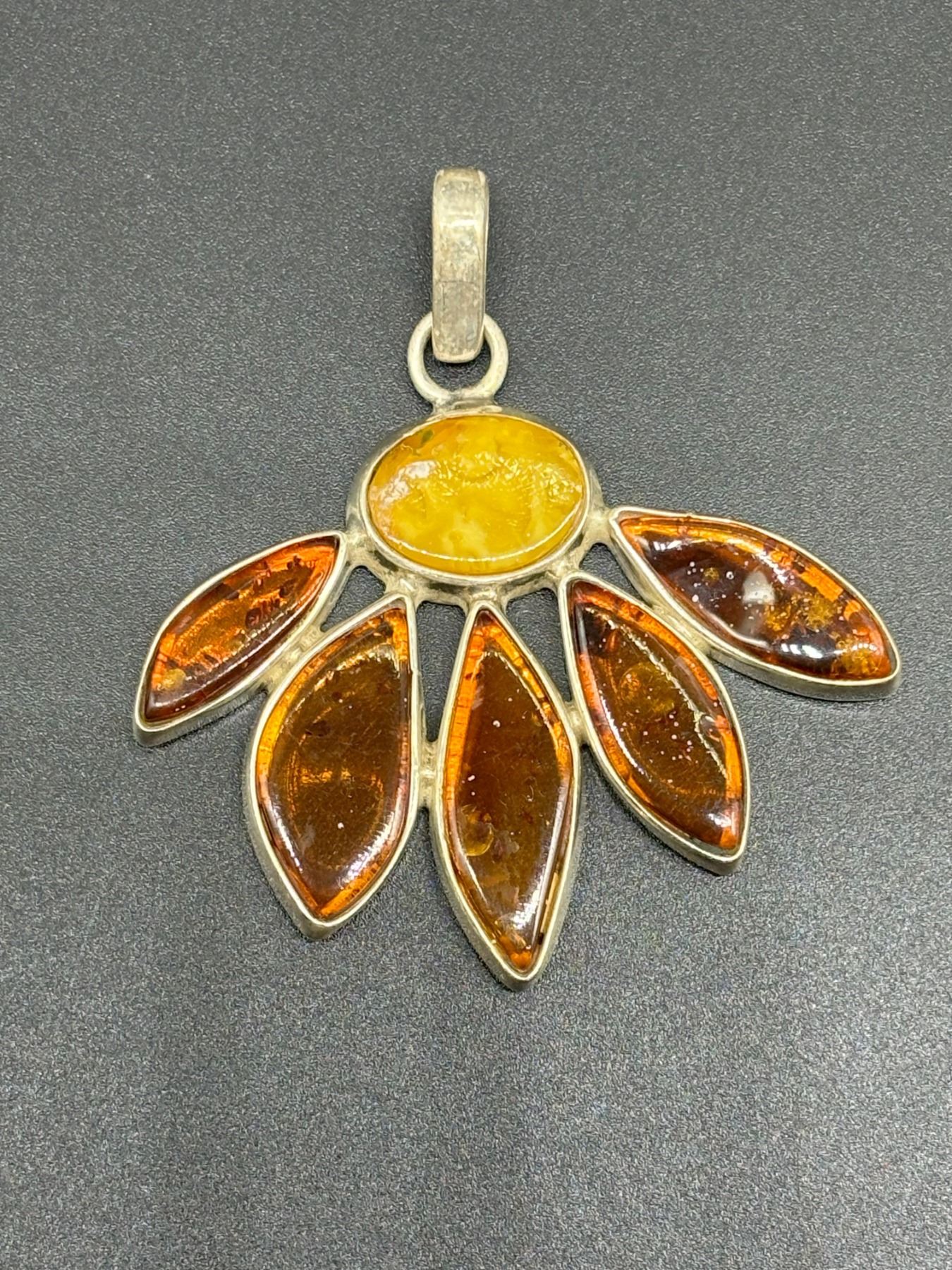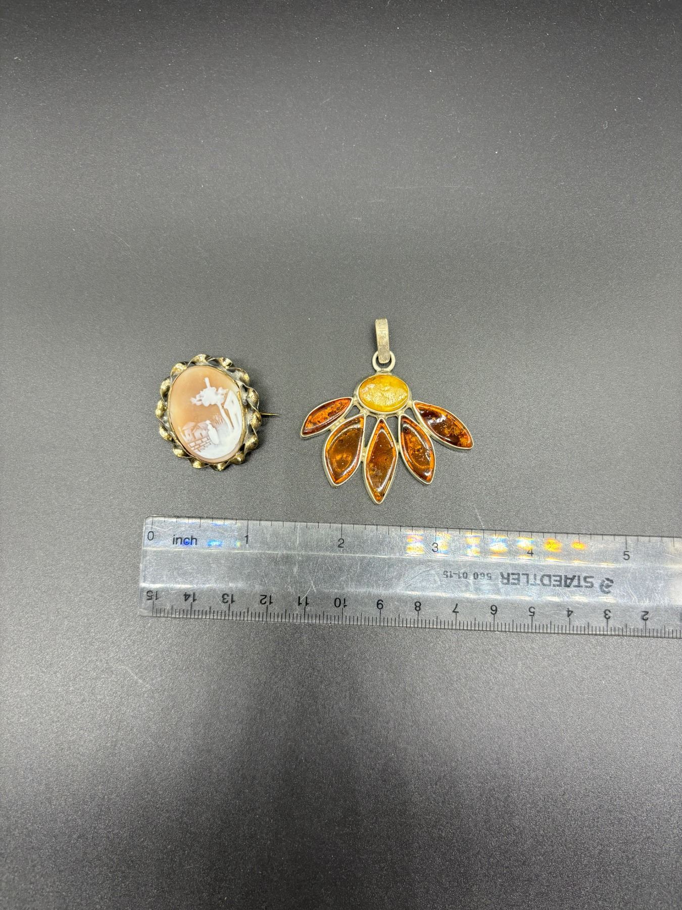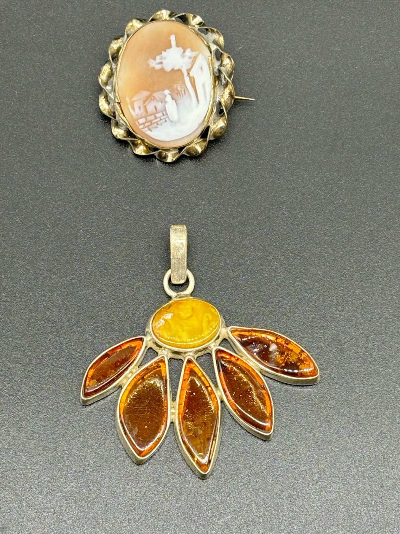 ANTIQUE CAMEO BROOCH AND VINTAGE 925 SILVER AMBER PENDANT