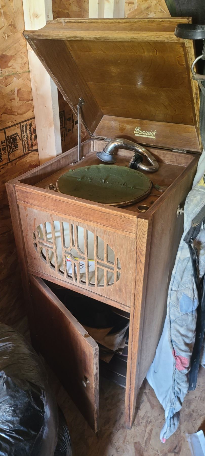 ANTIQUE BRUNSWICK GRAMMAPHONE C/W 45 & 78 RECORDS